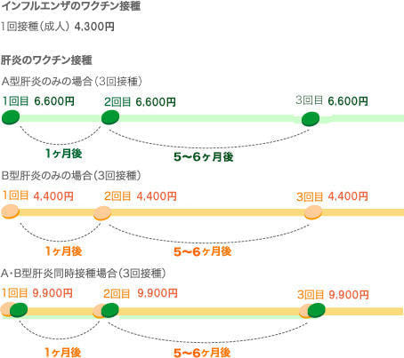 当院ではインフルエンザワクチンや、AまたはB型肝炎ワクチンの接種が可能です。